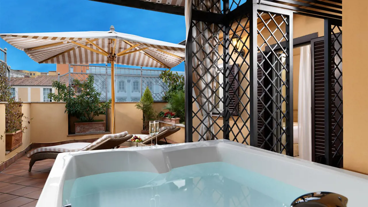 Il punto di forza della suite è rappresentato dall’esclusiva terrazza con vista su Piazza Barberini.